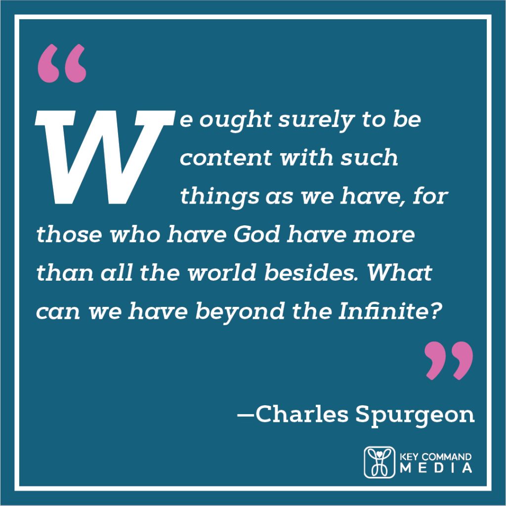 “We ought surely to be content with such things as we have, for those who have God have more than all the world besides. What can we have beyond the Infinite?” (Charles Spurgeon)