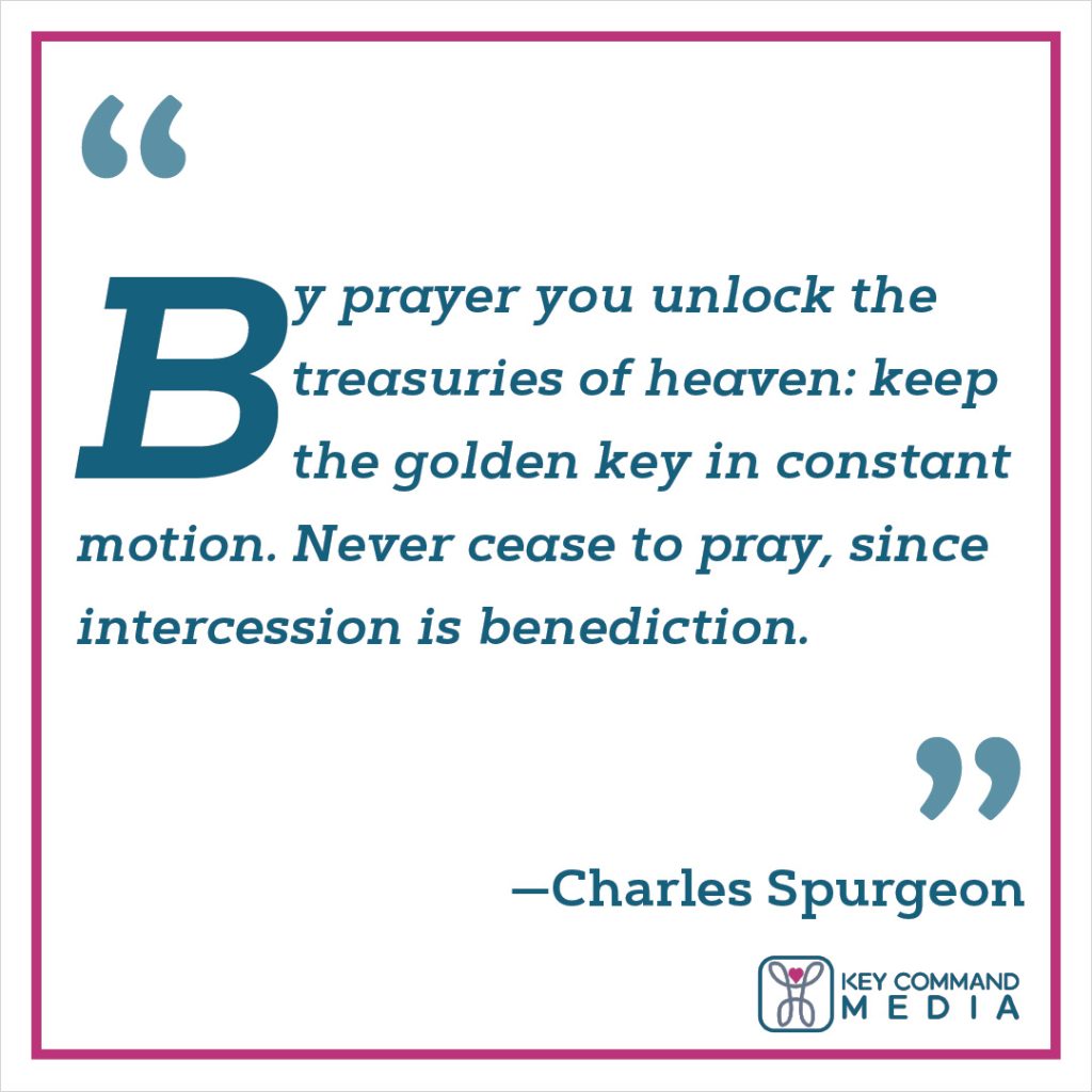 “By prayer you unlock the treasuries of heaven: keep the golden key in constant motion. Never cease to pray, since intercession is benediction.” (Charles Spurgeon)